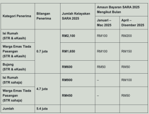 Selain SARA bulanan, kerajaan melaksanakan RM100 one-off dalam ekosistem SARA untuk warganegara 18 tahun ke atas pada 31 Ogos – 31 Disember 2025.
