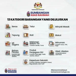 • Jenis bantuan: Kredit barangan asas cashless ke MyKad (bukan tunai ke akaun).